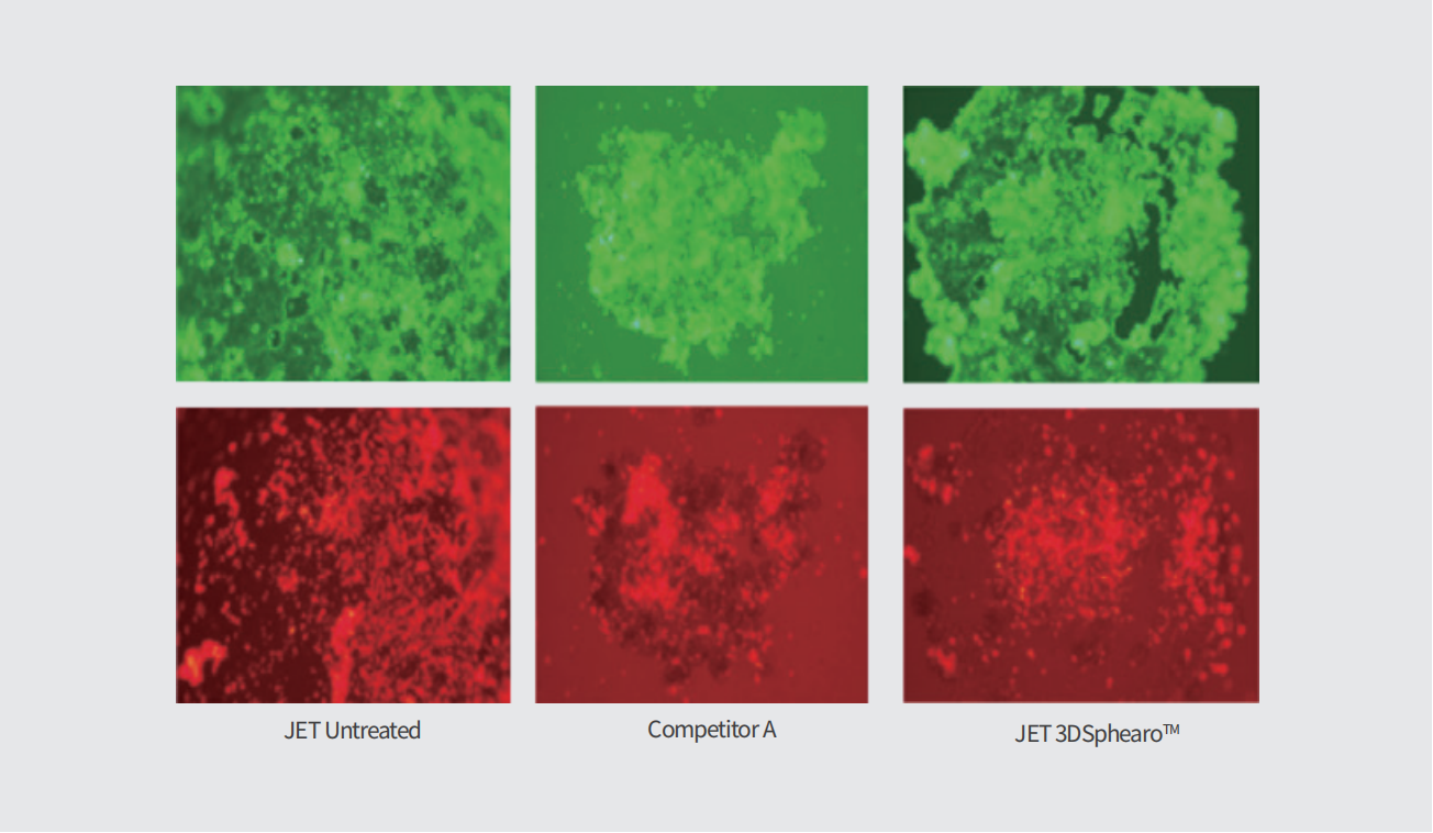 結(jié)果表明:3DSphearo™表面的細(xì)胞,相對同類進(jìn)口產(chǎn)品,細(xì)胞活力、細(xì)胞活率有更好的表現(xiàn)。